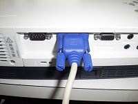 AプロジェクターとPCの接続口にD-SUBケーブル(※同梱)を接続して下さい。 ![]() ![]() ↑プロジェクター側↑ ↑パソコン側↑ Bあとは自動でスクリーンに映像が映し出されます。