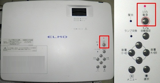 | ↑プロジェクター本体の上側↑ | ↑ボタンの拡大写真↑ |